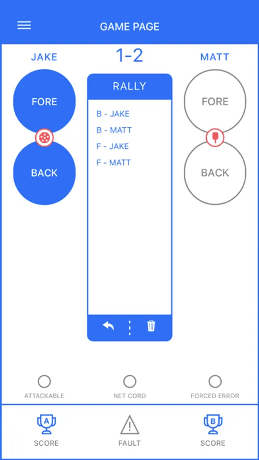 PickleballStat allows you to enter rallies shot-by-shot to generate key performance metrics about your game. PickleballStat will break down your strokes by forehand and backand for serves, 3rd shotes, attackable shots, winners, forced errors, and unforced errors.