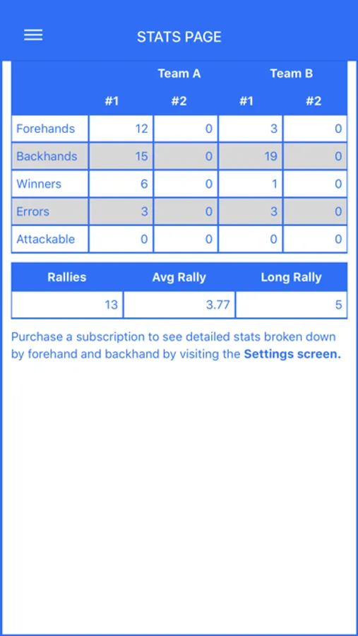 Purchase a subscription to see detailed stats broken down by forehand and backhand.
