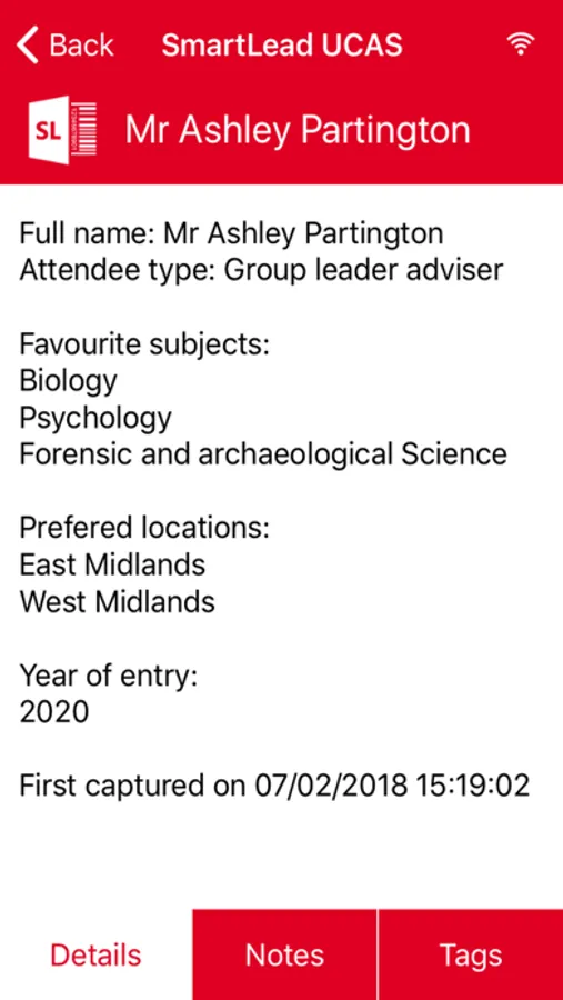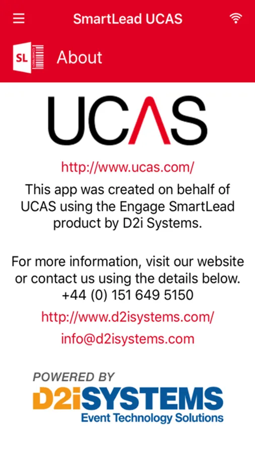 Exhibition visitor scanning app developed and branded for UCAS using the SmartLead product by D2i Systems.