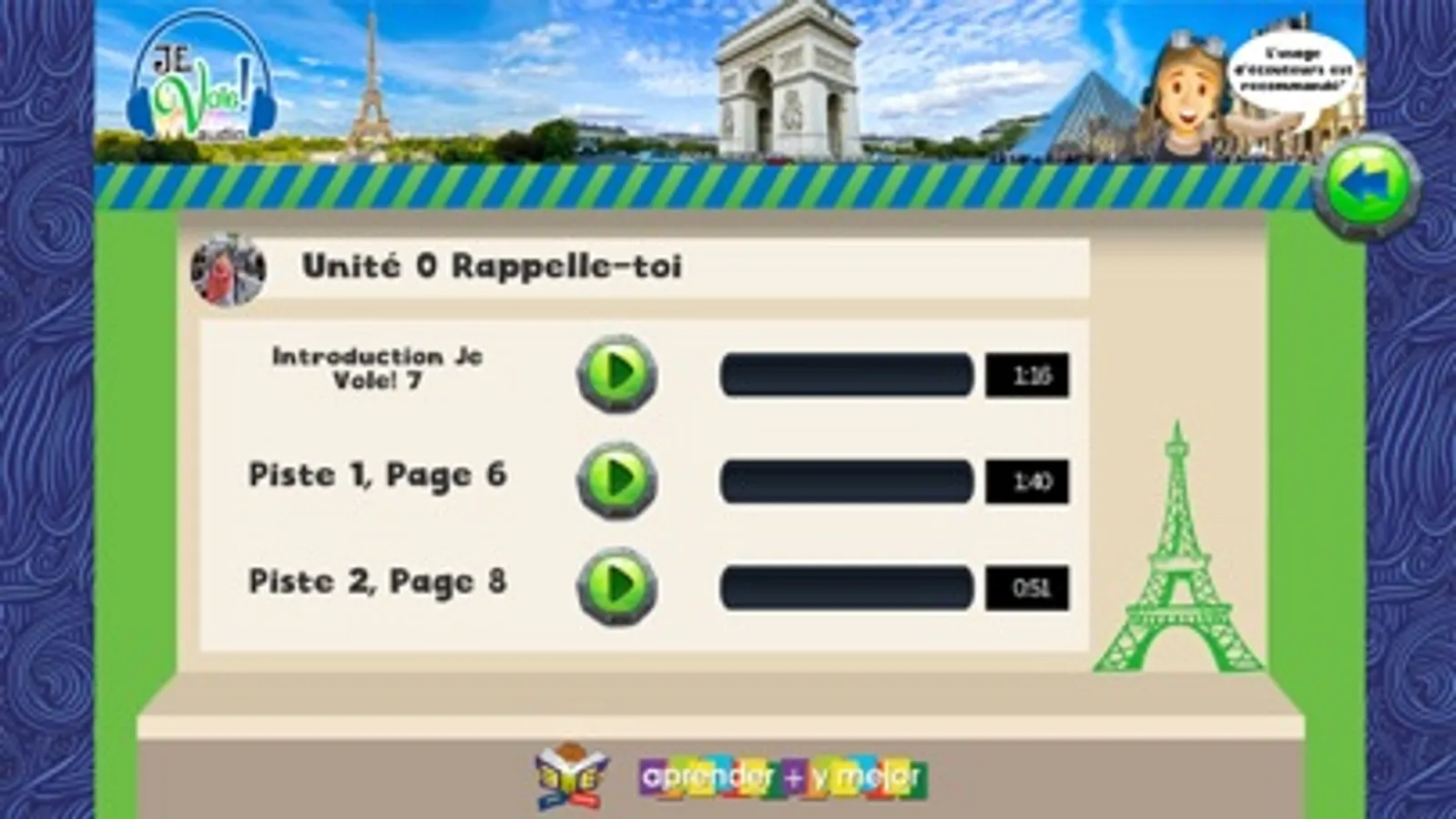 Je Vole Audio es un aplicación gratuita que te permite tener acceso a los audios de la serie de libros Je Vole! de Eduvisión.