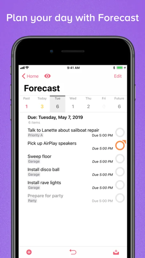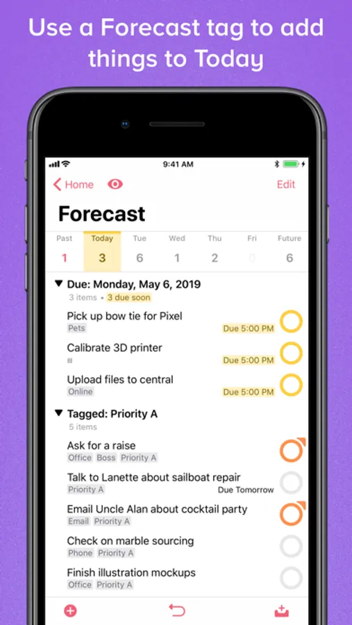• NEW: Today’s Forecast can include items with a specific tag, and you can reorder those tasks however you choose, so you can plan your day better