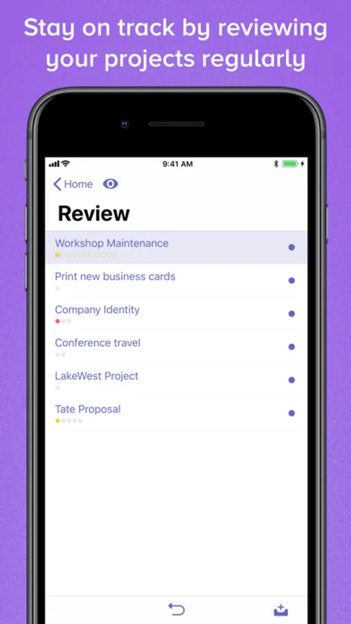 • The Review perspective takes you through your projects and tasks — so you stay organized