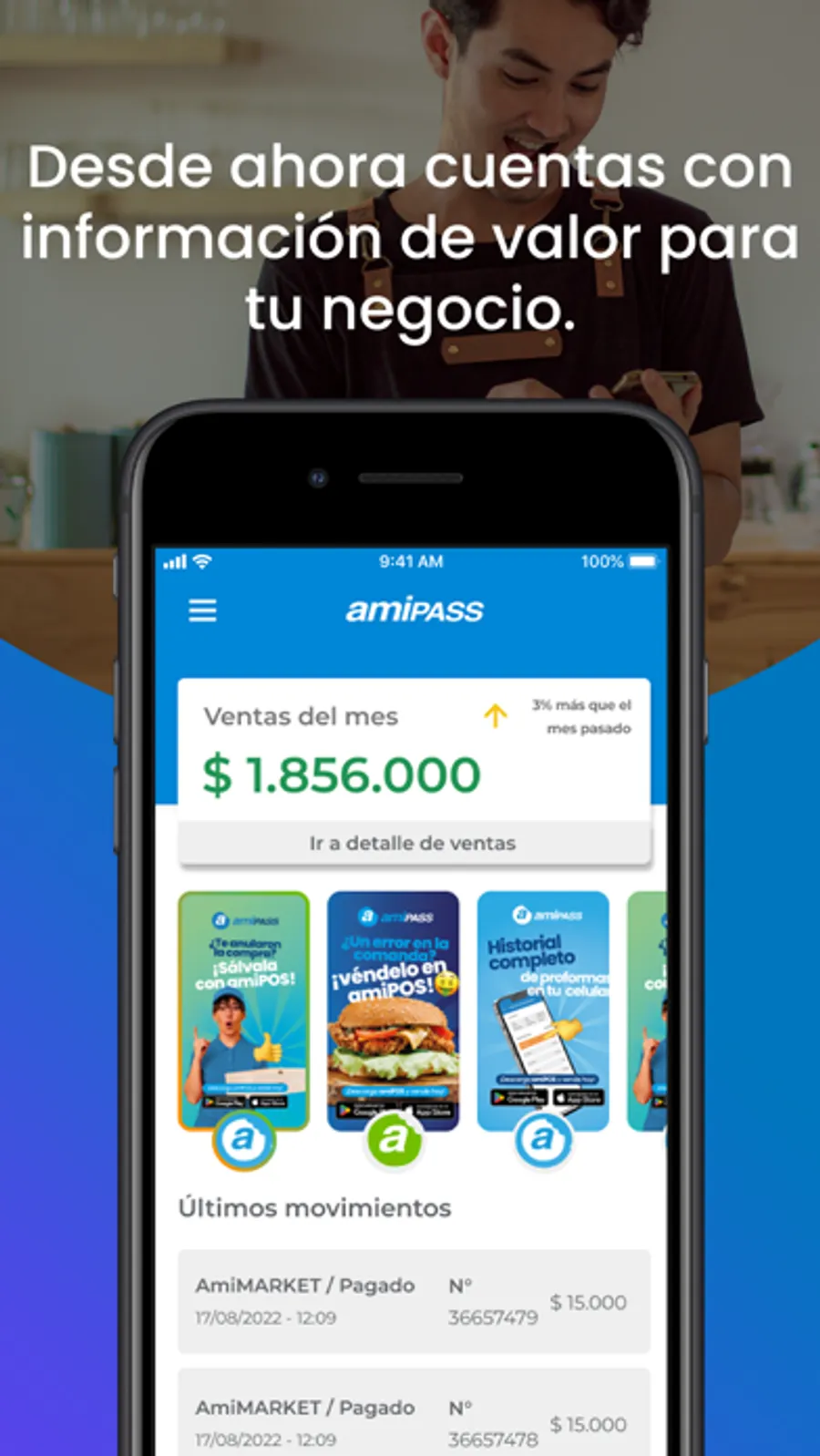 Con Amipos puedes cobrar las ventas de clientes Amipass desde tu celular. Lo rediseñamos para que sea simple y rápido de usar. Así no perderás tiempo y podrás dedicarte a lo importante que es aumentar las ventas de tu negocio.