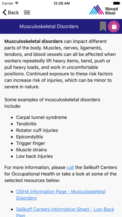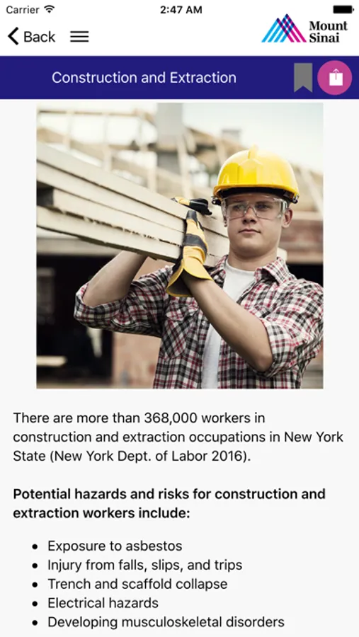 The Selikoff Occupational Safety App is an educational resource for workers on topics related to occupational health and workplace hazards.