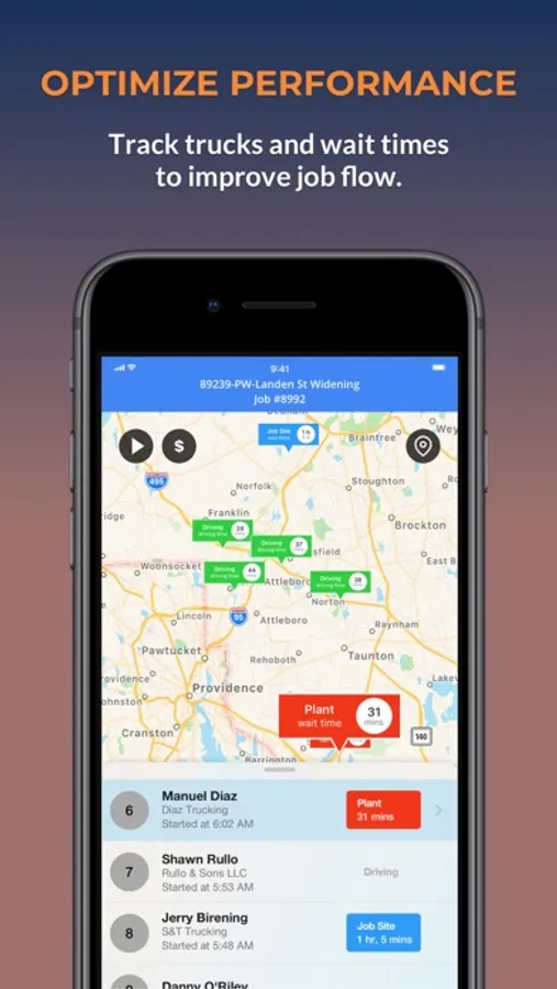 - OPTIMIZE PERFORMANCE. In real-time, GPS track your trucks and wait times to optimize job flow at your plants and jobsites.