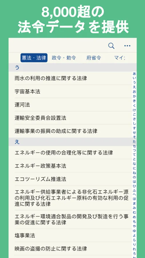注:五十音インデックスは法令名の読みではなく漢字音読み順による簡易版です