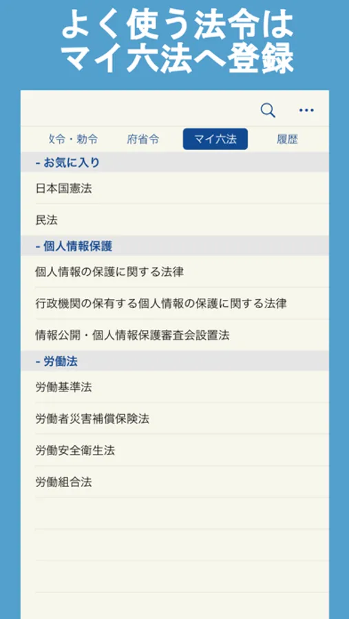 - よく使う法令はマイ六法に登録しておくと参照が楽