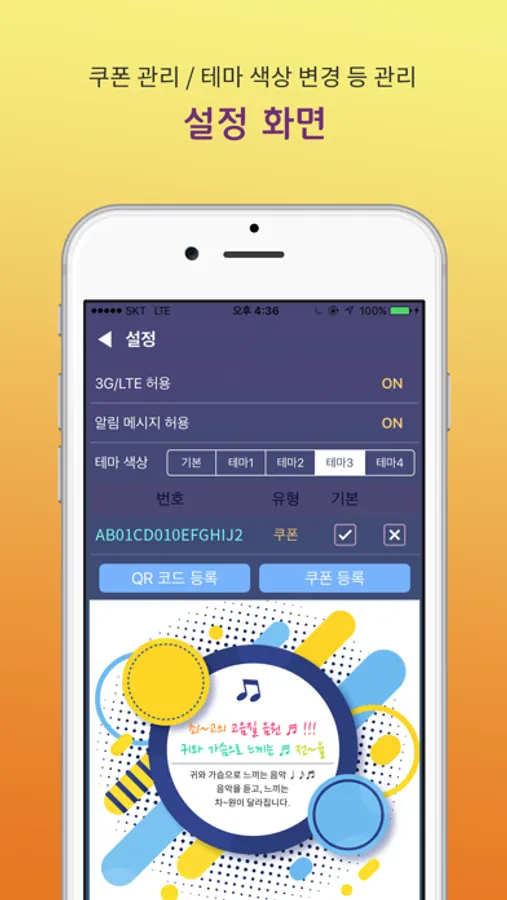 [설정] NFC/QR 코드/쿠폰 등록, 알림 메시지 On/Off