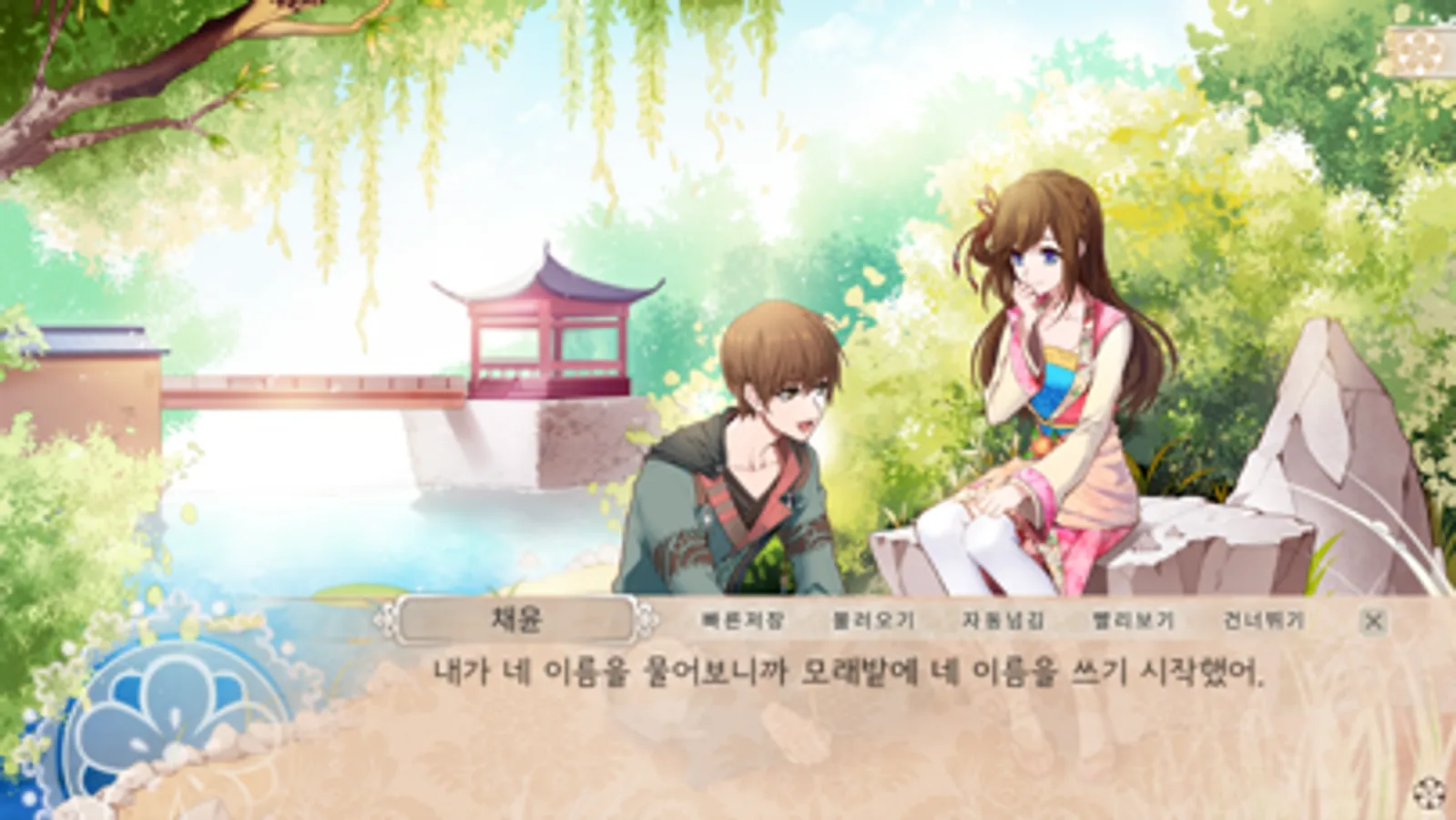 시를 지으며 즐거운 한때를 보내는 두 사람.