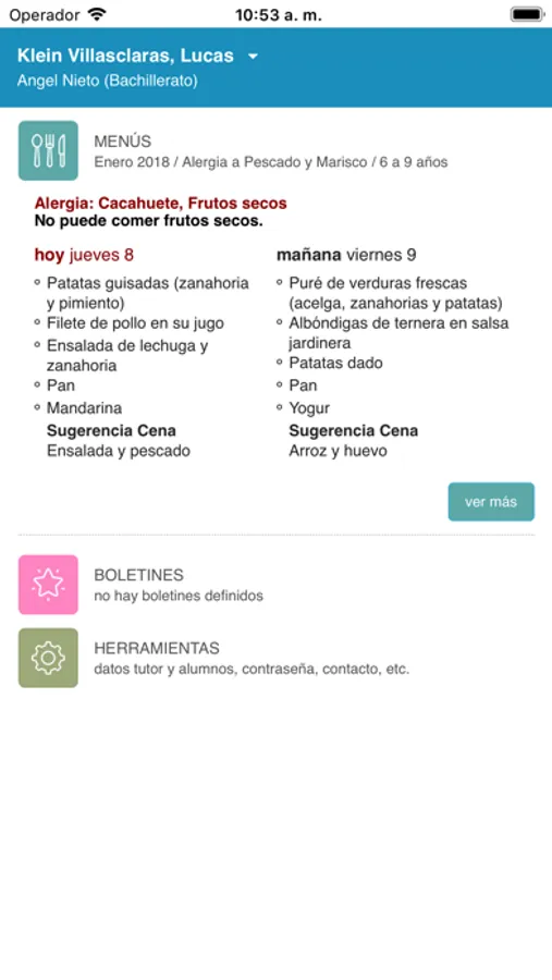 Conoce lo que comen tus hijos cada día, si van o no al comedor o se registran incidencias. Verifica aquí el estado de tus recibos y, si quieres, déjanos tu opinión sobre el servicio.