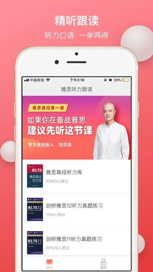 雅思听力跟读,提供实用的雅思听力口语专项训练。精选剑桥真题4-12练习,帮助你在30天内提高听力敏感度,敢于开口说英语。打开手机就能练,坚持30天保守估计提高1分~
