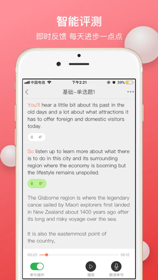 说得好还是不好,练完就告诉你结果,快速纠正单词发音与流畅度。