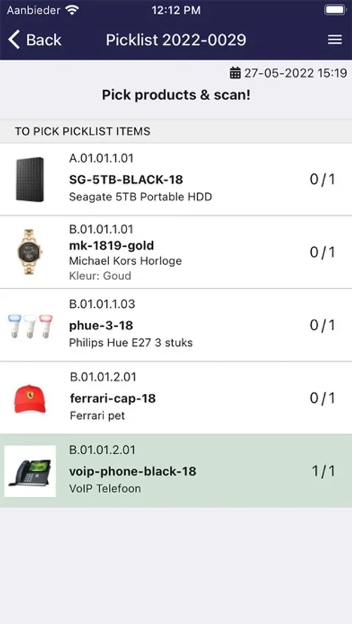 Pick producten van orders & picklijsten uit het GoedGepickt systeem. Bekijk picklocaties, voorraden en meer.