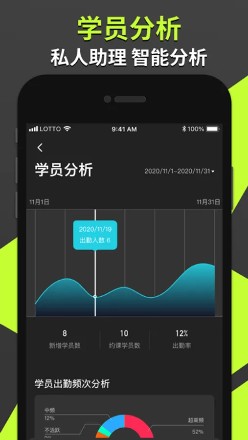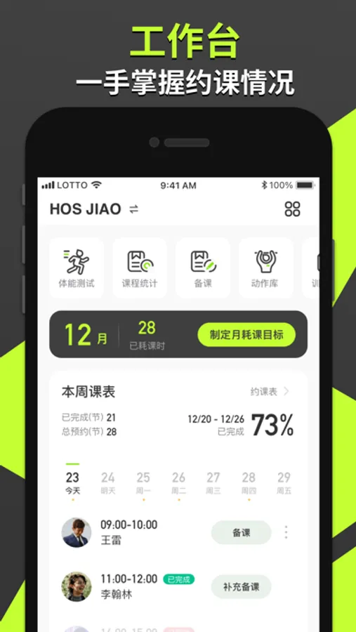 建立永久健康档案,实时了解学员身体数据,随时查看体重记录,学员打卡健身,方便约课排课,制定训练计划和饮食方案,系统管理学员数据。也让教练了解学员减肥健身效果,调整锻炼计划,让学员keep健身热爱。