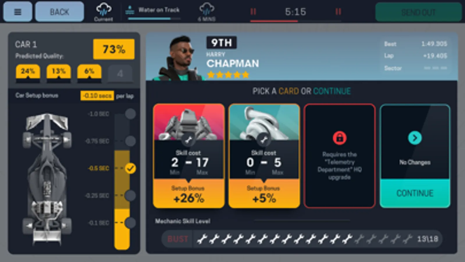 • Work with your drivers to achieve the perfect qualifying lap.