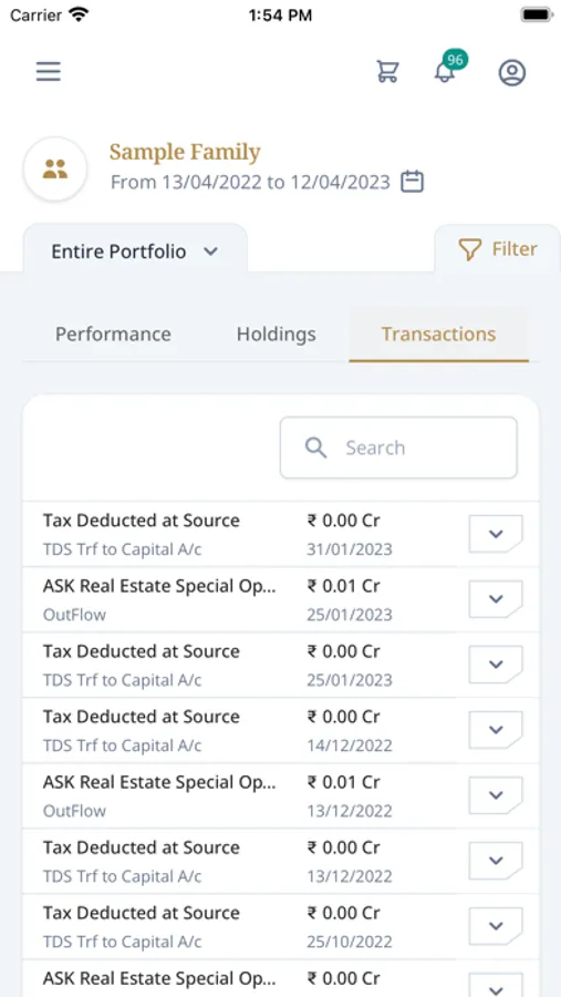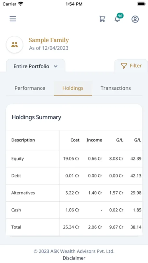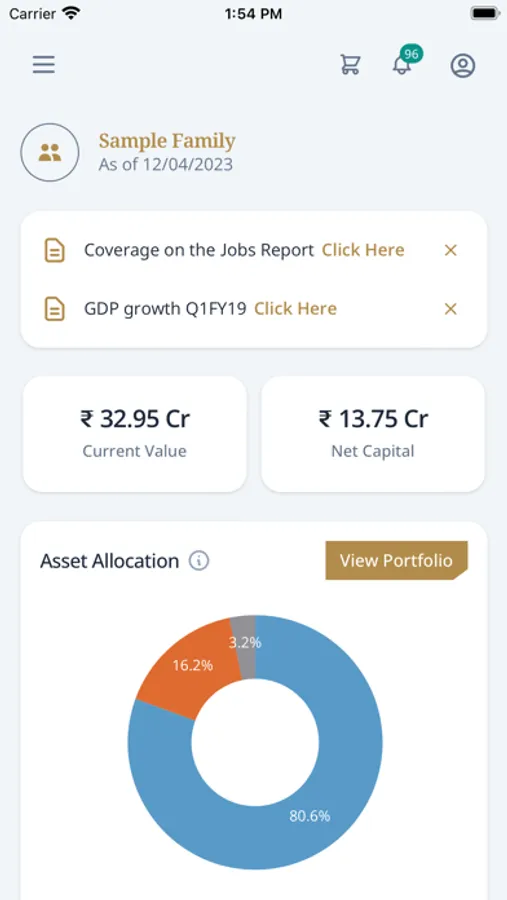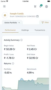 - Dashboard of your investments at all levels i.e. Family, Client and Account level