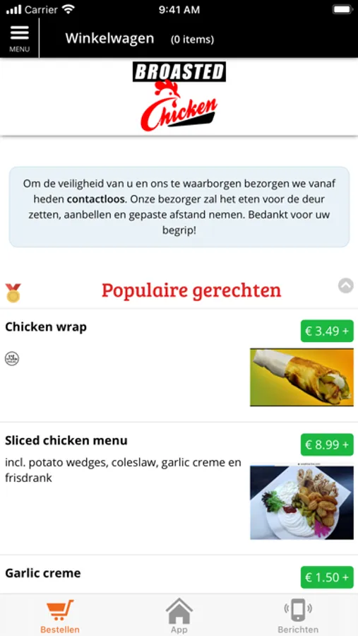 Download onze app en blijf op de hoogte van het laatste nieuws en de nieuwste acties, aanbiedingen en kortingen. Via onze app kunt u onze menukaart bekijken en direct vanaf uw telefoon uw bestelling plaatsen. U kunt via de app ook met iDEAL betalen!
