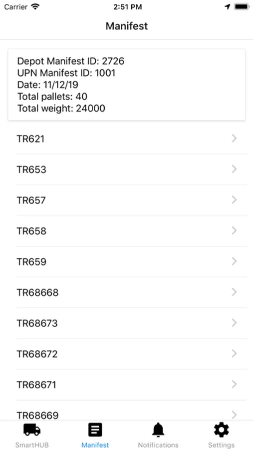 The SmartHUB app monitors and manages all trunks with GPS Tracking of inbound and outbound journeys, In-App Digital manifests, and In-App “On site Guidelines”. The app also receives “call in” notification to indicate when on site trunks are ready to be loaded.