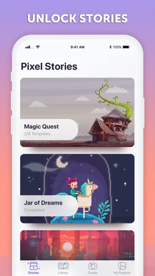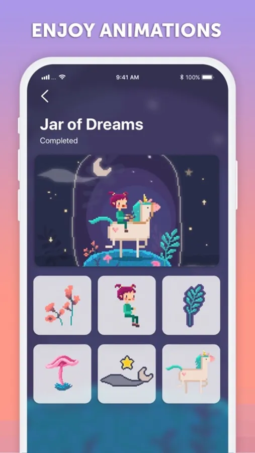 Explore PixelArt’s extensive adventure mode with beautiful animated stories for you to discover. Choose your favorite story and color its templates to unlock awesome rewards!
