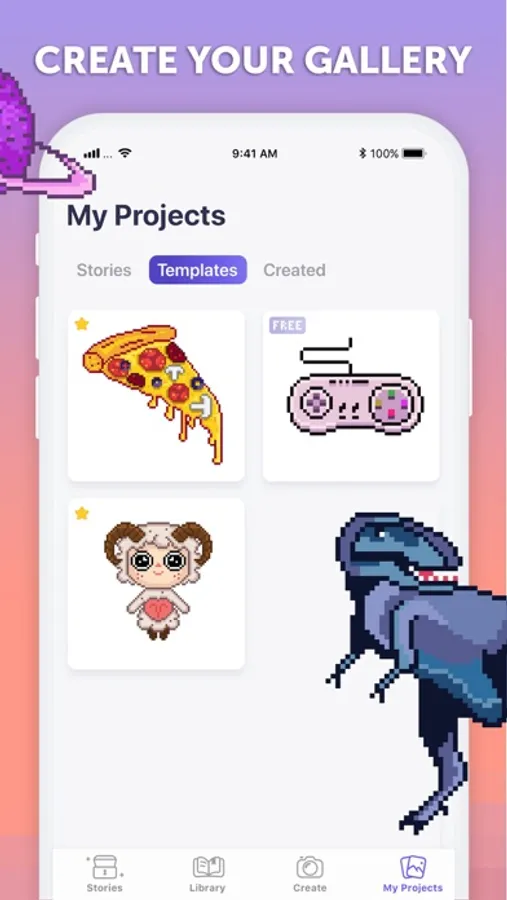 With PixelArt you’re not limited only to our own coloring library and pixel stories. You can take photos or add any photo from your gallery to pixelate and color!