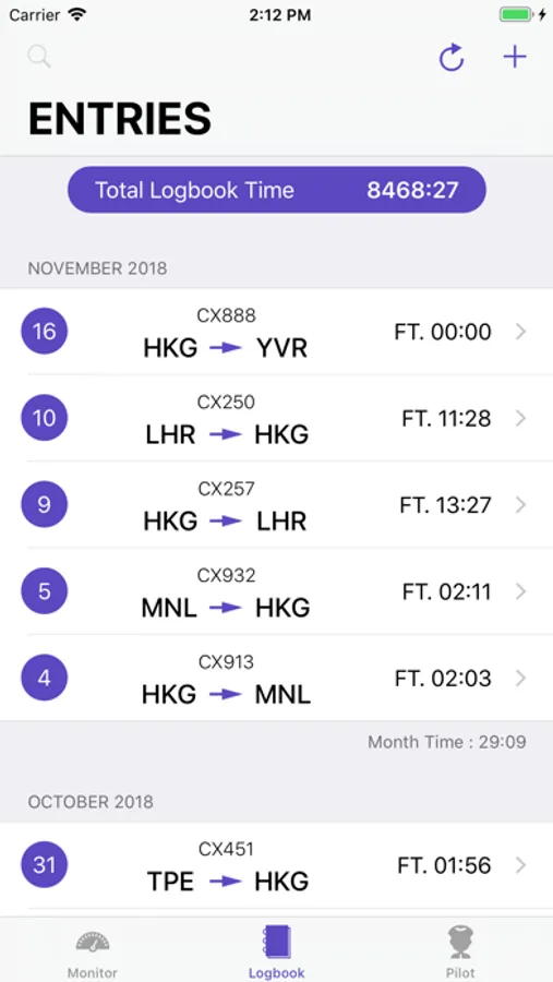 Air Pilot Logbook Airlines monitors constantly your documents, ratings, qualifications, including expiry dates, renewals, recency. The Monitoring feature will keep you notified should any expiry date approach.