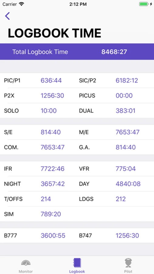 Air Pilot Logbook Airlines will automatically update all of your Total Flight Times, P1, P2, Solo, VFR, IFR, S/E time, M/E time.... Totals are easily accessible at any time through templates logically designed.