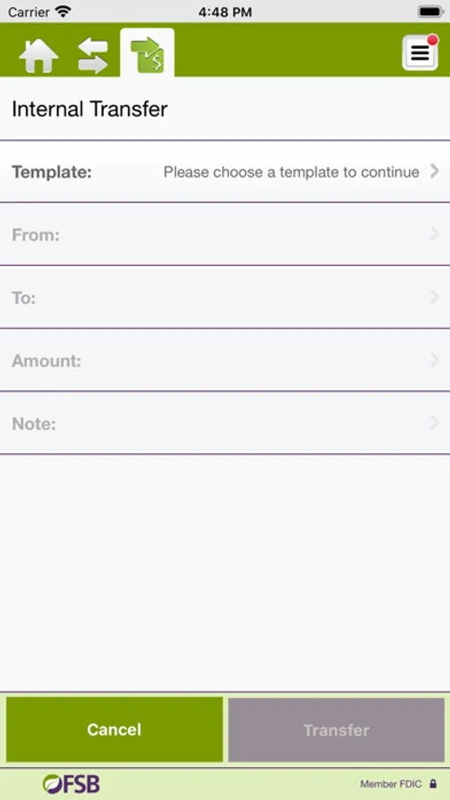 • Transfer money between accounts