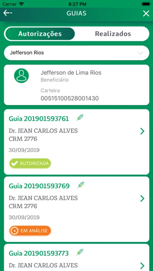 - Acompanhe o status de suas guias, envie os anexos necessários para autorização e confira seus procedimentos realizados nos semestres anteriores.