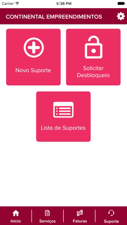- Opção para acompanhar seus suportes ou iniciar um novo atendimento;