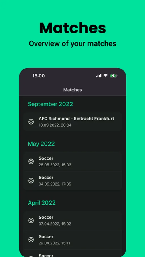 Get precise analyses of your performance and a visual heatmap of your movements on the field. Optimize your game by analyzing your positioning and movement patterns! All health data are securely collected via Apple Health and remain entirely on your device.