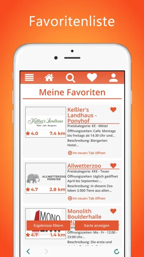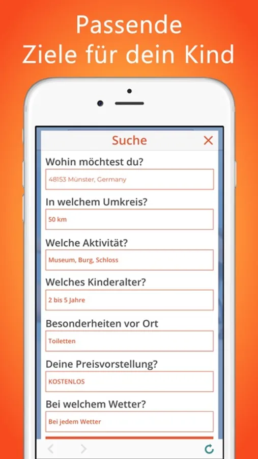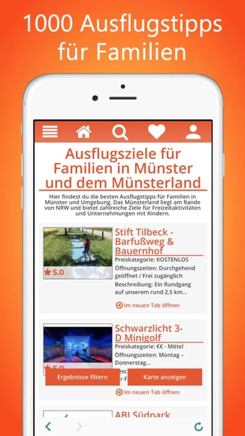 Über iPhone oder iPad findest du bei uns Ausflugstipps in deiner Nähe. Die Ausflugsziele sind besonders kindergeeignet und die Suche ist auf die Bedürfnisse von Familien ausgerichtet.