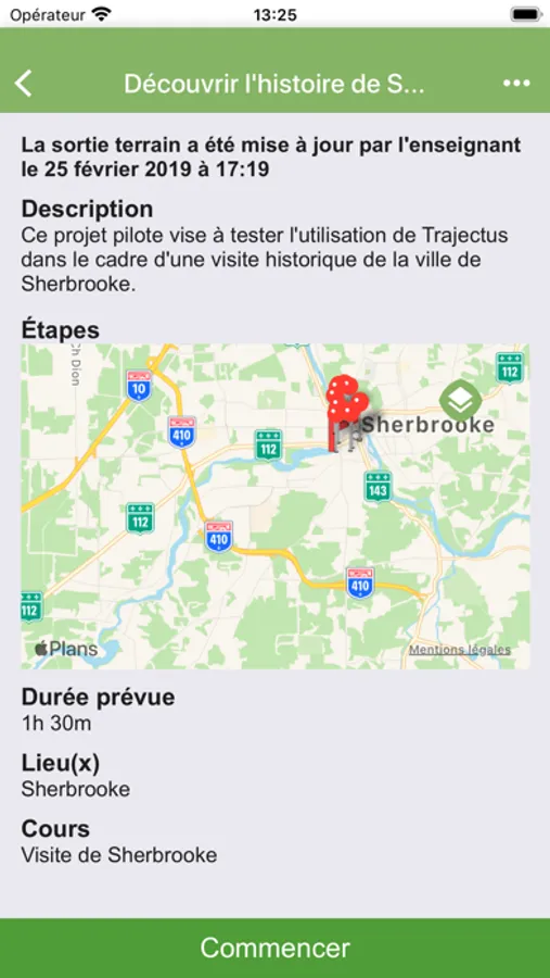 From the Trajectus mobile application, students execute the field trip. At each stage, students collect data and at the end of their outing, the data can be pushed to the server for review by the teacher.