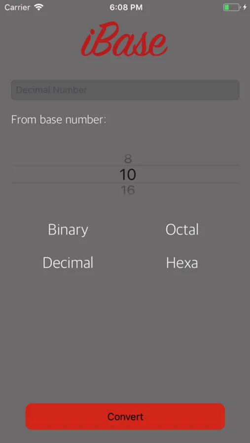 iBase offers instant conversion between bases 2 (Binary), 8 (Octal), 10 (Decimal), 16 (Hexadecimal)