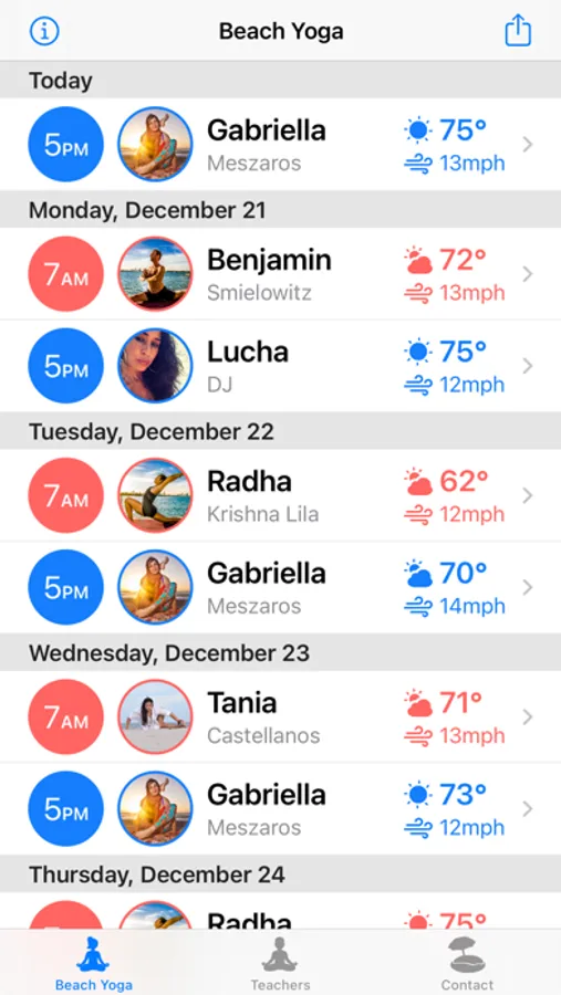 The official app for 3rd St Beach Yoga! Get the complete class schedule with the expected weather conditions for beach yoga at 3rd Street and Ocean Drive in Miami Beach, Florida.