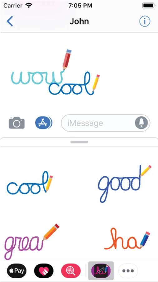 Ready Reply LITE is a FREE version of Ready Reply. The LITE version includes 12 animated handwritten messages, along with the pencil that writes them, plus 4 animated stickers. Choose from yes, no, cool, great, sure, okay, along with 6 more quick replies to add to your iMessage conversation. All replies are transparent and can be pasted anywhere in your conversation. (Only for those who can read the secret code of cursive handwriting in English.)
