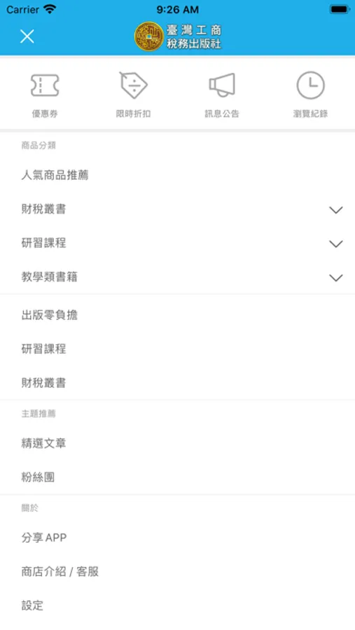 為讓使用者更加便利,台灣工商稅務出版社也跟進使用手機APP讓各位使用者能夠更快速的尋找並購買您需要的書籍,且能夠隨時注意我們提供的最新課程。在APP內提供月刊試讀,以及上課片段影片。