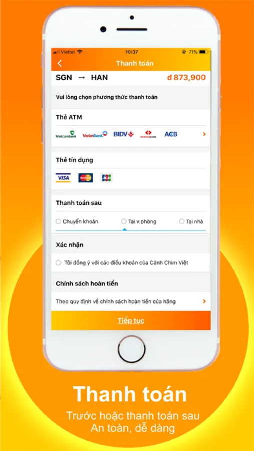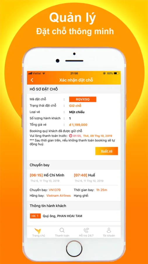 Hỗ trợ đặt vé, thanh toán online nhận ngay code chuyến bay qua Mail, SMS