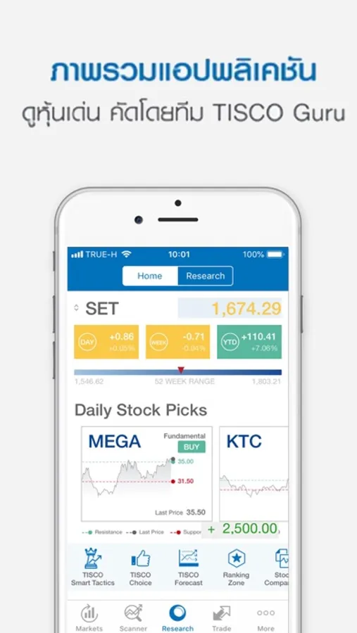 3. Scanner: กลยุทธ์แบบสำเร็จรูปที่เหล่ากูรูของทิสโก้เป็นคนช่วยกันสร้าง และ กลยุทธ์แบบ DIY (Do it yourself) ที่ทำให้นักลงทุนสามารถค้นหาหุ้นด้วยตัวเองและบันทึกเก็บไว้เพื่อใช้หาในครั้งต่อไปได้ Stock Scan Plus