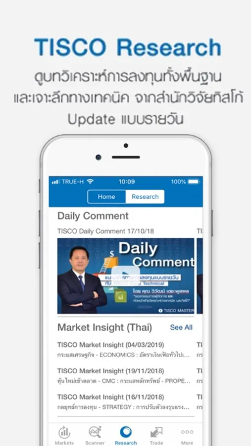 2. Research: บทวิเคราะห์หลักทรัพย์กลยุทธ์ทั้งหุ้นและอนุพันธ์ และบทวิเคราะห์หุ้นรายตัวแบบเจาะลึก โดยตรงจากฝ่ายวิเคราะห์หลักทรัพย์ โดยสามารถดูได้ทั้ง VDO Daily Comment, Monthly Comment และ PDF