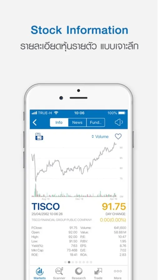 ช่วยให้คุณสามารถค้นหาหุ้นที่น่าสนใจได้อย่างง่ายดาย อีกทั้งยังมีฟังก์ชั่นเด่นที่ช่วยวางกลยุทธ์การลงทุนแบบสำเร็จรูป ซึ่งมาจากการวิเคราะห์ของเหล่ากูรูของทิสโก้ และ กลยุทธ์แบบ DIY (Do it yourself) ทำให้นักลงทุนสามารถค้นหาหุ้นด้วยตัวเองและบันทึกเก็บไว้เพื่อใช้หาในครั้งต่อไปได้ ทั้งนี้Stock Scan Plus พร้อมให้ใช้งานแล้วผ่านระบบ IOS
