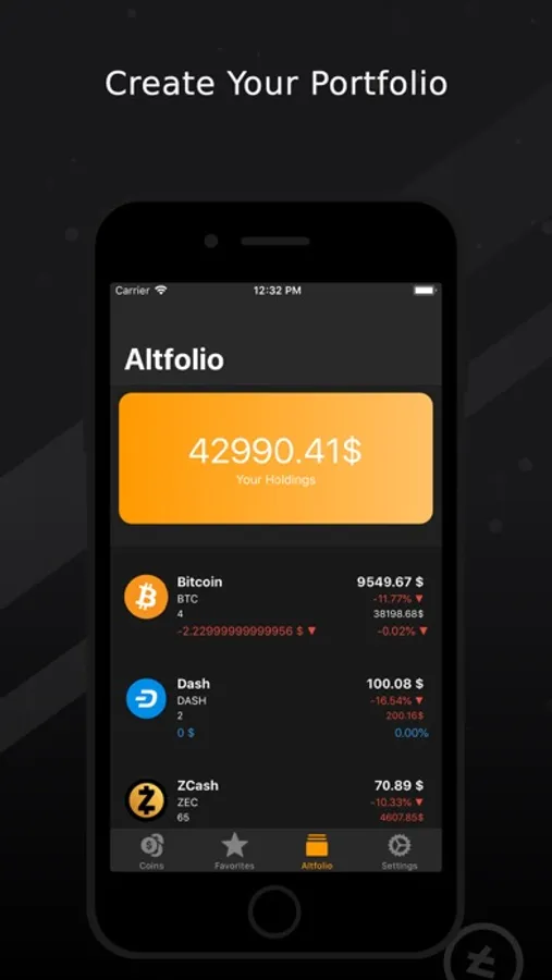 -- Your own favorite coins portfolio where you can monitor all your favorite crypto coins.