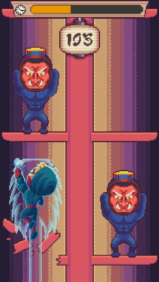 Night in Japan. Full moon. A new ninja has to climb the ninja tower as high as he can, avoiding the hitting hammers of the master ninjas.