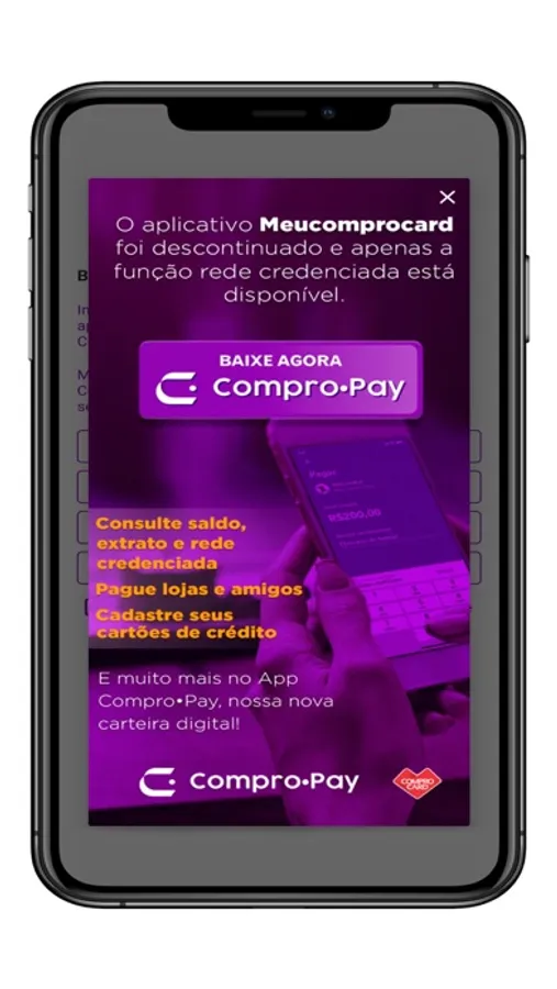 Baixe agora ComproPay, nossa nova carteira digital! Lá você vai conseguir além de ver saldo, extrato e rede credenciada: