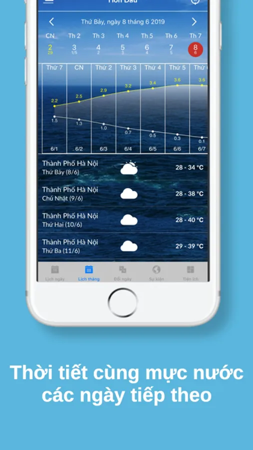 “Lịch thủy triều” sẽ giúp bạn xem được mực nước thủy triều lên xuống, mưc nước biển và lịch âm dương Việt Nam. Bạn có thể nắm được chiều cao của mực nước để có thể sắp xếp lịch trình đi lại một cách thuận tiện và an toàn nhất.