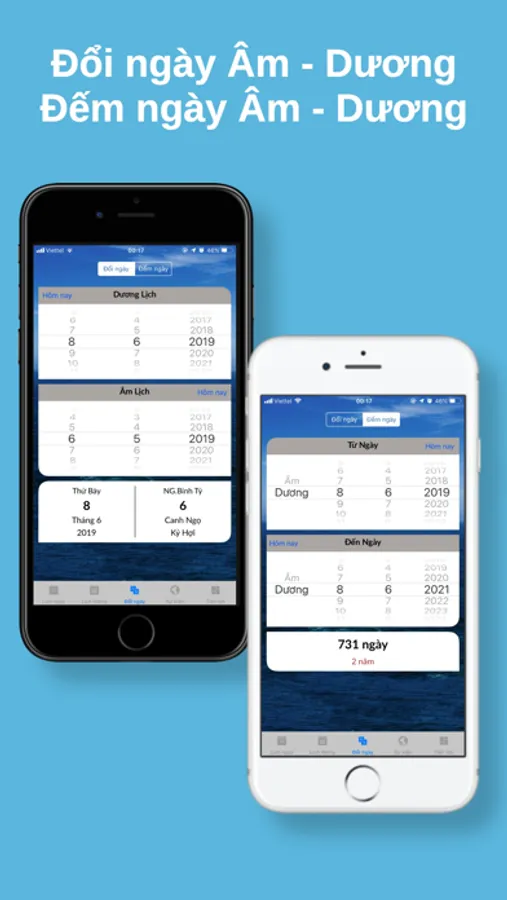 Bạn có thể theo dõi lịch âm dương năm, chuyển lịch dương sang lịch âm và ngược lại.