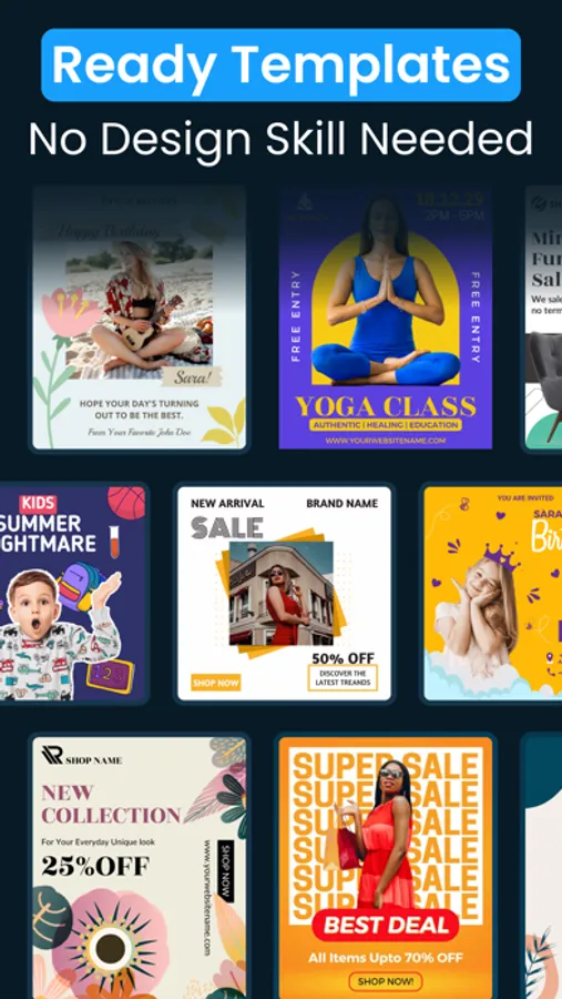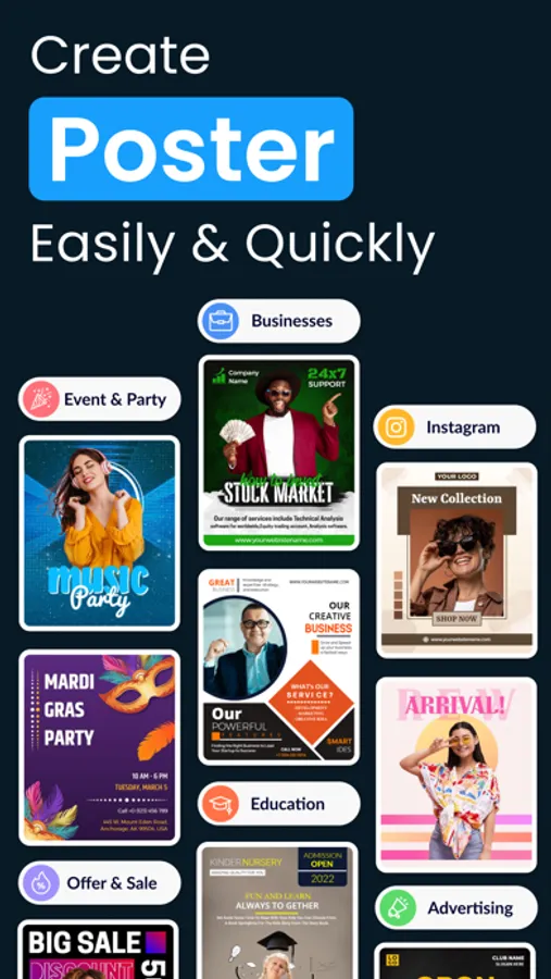 Accelerate your business's growth across social media platforms with eye-catching digital posters. You no longer require the services of a graphic designer to craft professional advertising graphics. Our extensive collection of customizable graphic design templates, accessible through this intuitive app, empowers you to unleash your creativity.