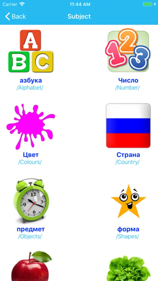 * Animals: includes 90 animals with real pictures of them. Your beginner very love animals so it help beginner impression and want to learn russian.