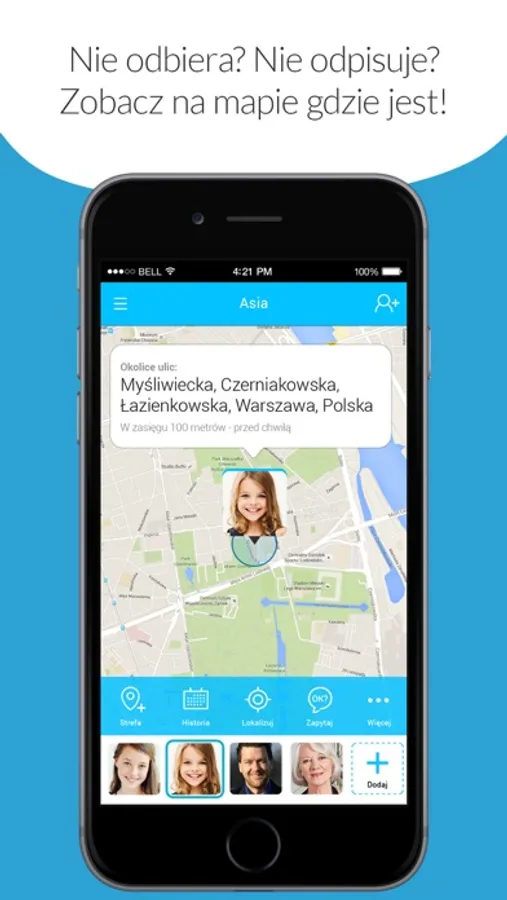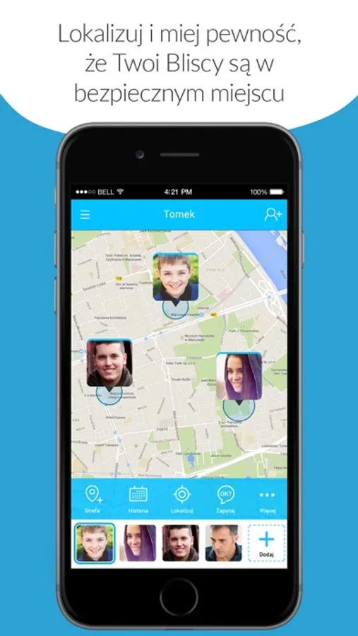 Chcesz wiedzieć, kiedy Bliski opuści szkołę, dom czy pracę? Definiuj strefy, w których przebywają Twoi Bliscy. Otrzymuj automatyczne SMSy, gdy dotrą na miejsce lub je opuszczą.