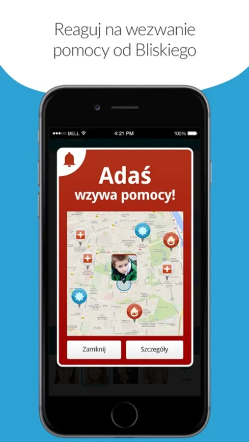 Bliski może w prosty sposób powiadomić Cię o zagrożeniu. Wezwanie S.O.S. trafi do Ciebie oraz do wszystkich wskazanych wcześniej osób. Do zgłoszenia dołączone zostanie video lub zdjęcie wraz z lokalizacją. Korzystanie z powiadomień S.O.S. jest możliwe po zainstalowaniu bezpłatnej aplikacji Rodzinne SOS na telefonie Bliskiego. Pobierz aplikację: https://goo.gl/0YpfqW