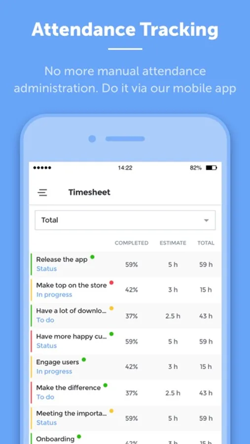 Attendance Tracking – No more manual attendance administration. Do it via our mobile app in office and away. Integrate your biometric devices. Match actual in-out hours with attendance and timesheet reports.